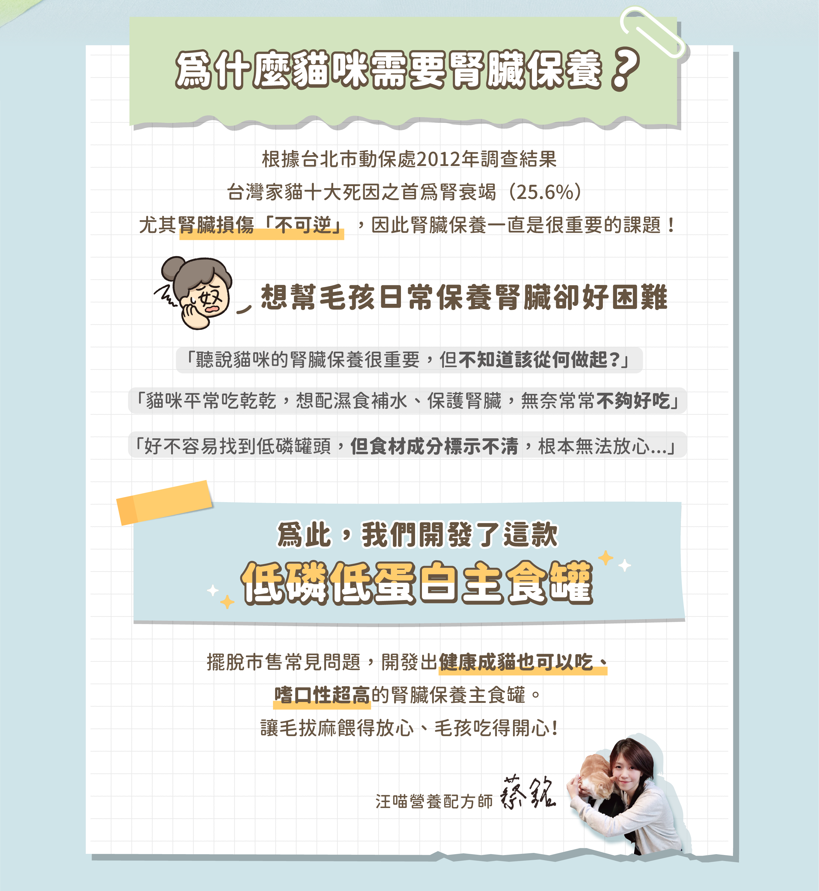 低磷+中低蛋白配方,維持腎臟健康!