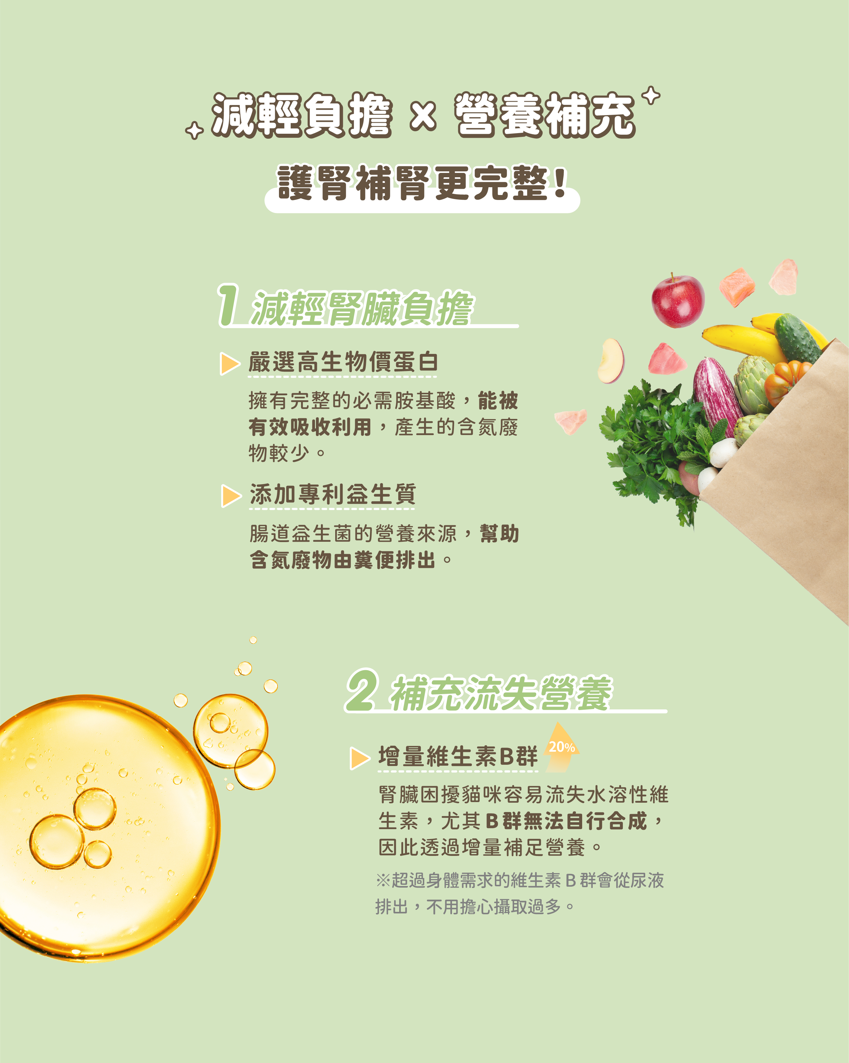 • 添加專利益生質,幫助腎臟保健