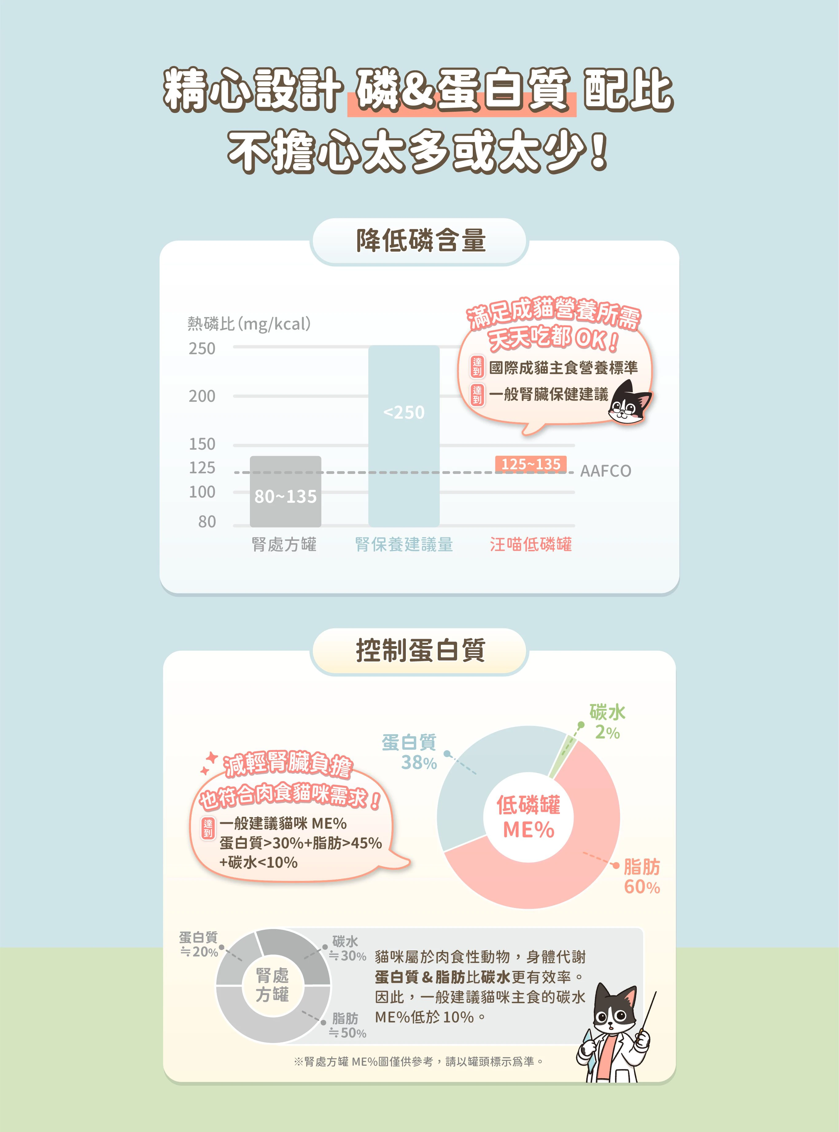 低磷+中低蛋白配方,維持腎臟健康!