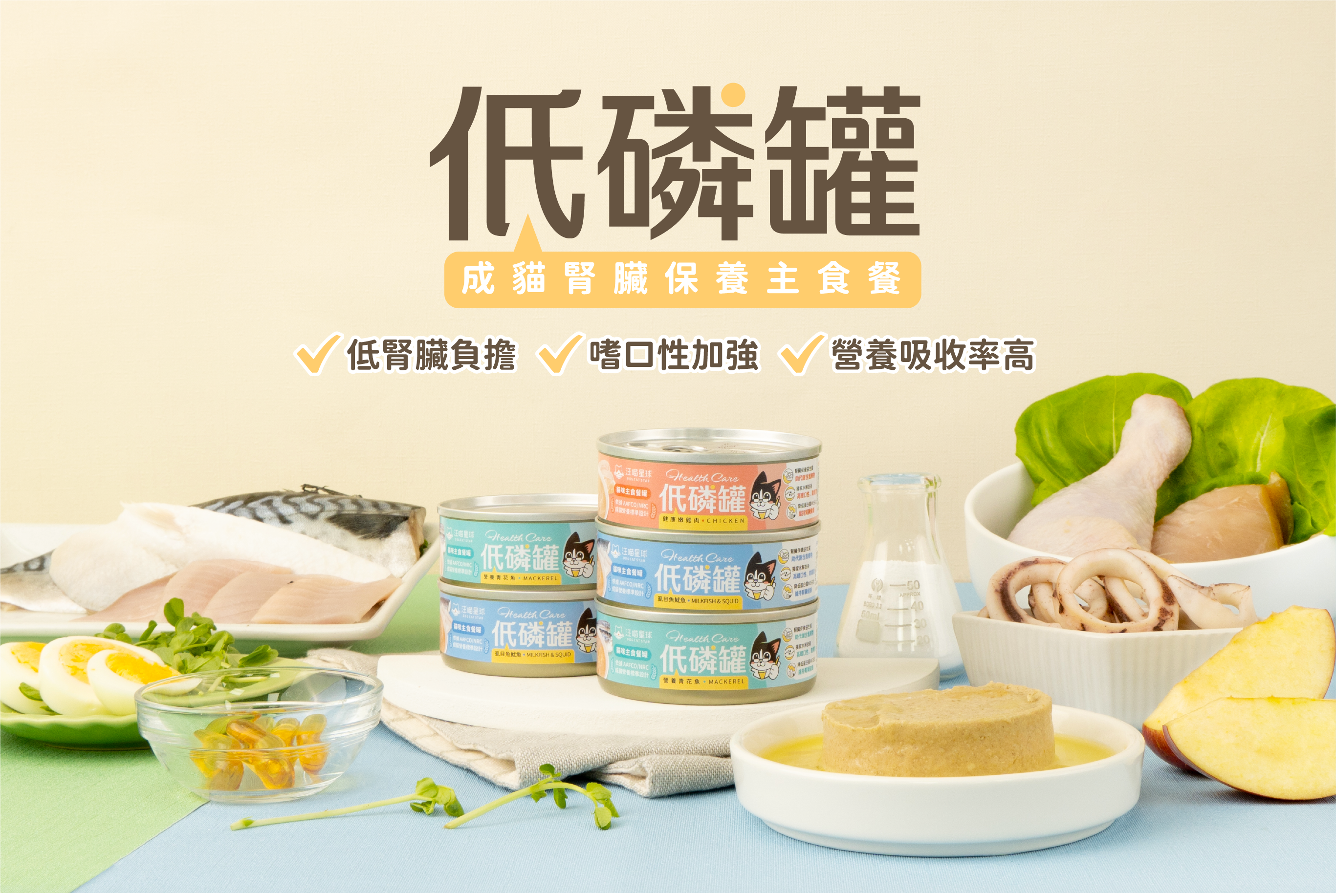 低磷+中低蛋白配方,維持腎臟健康!