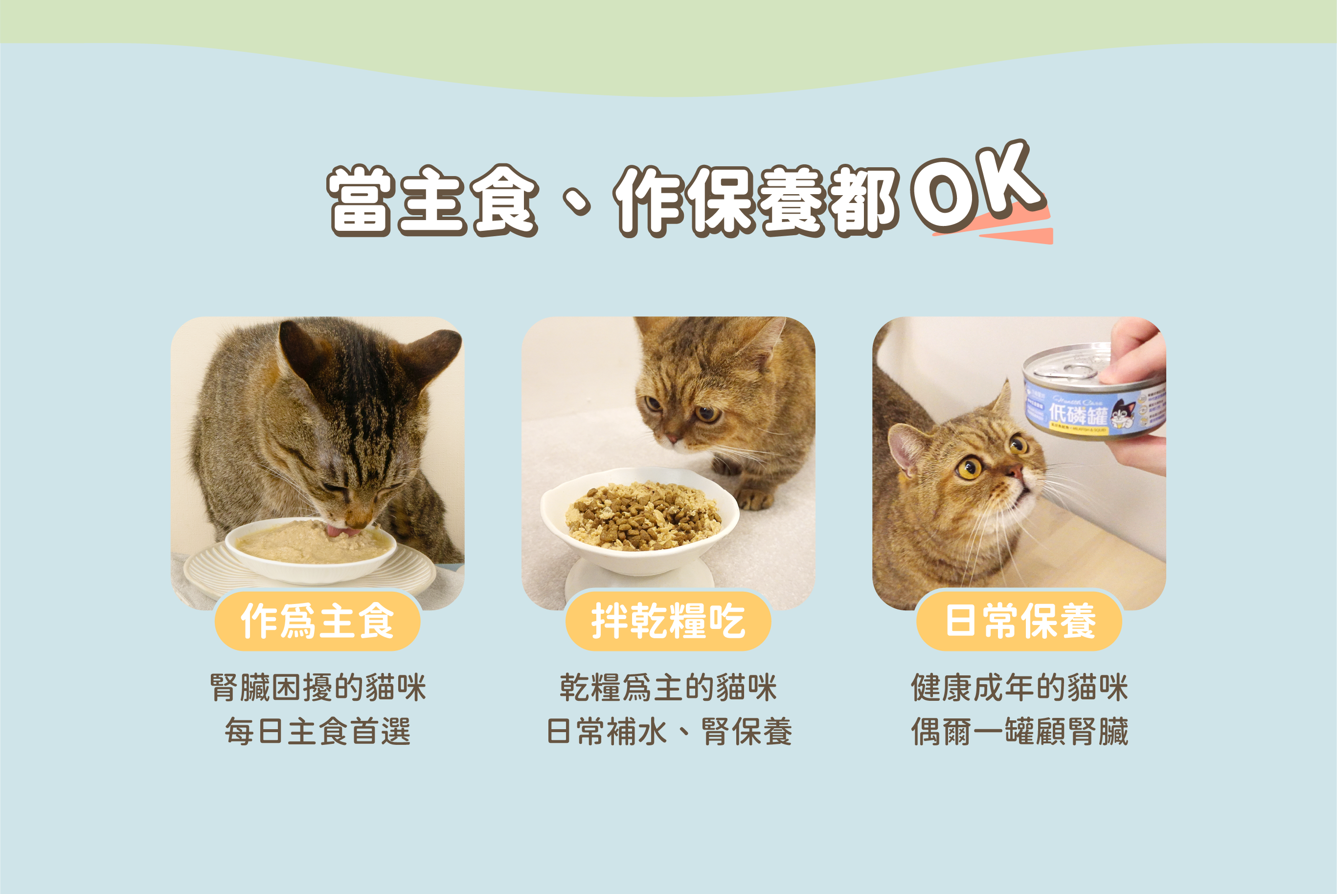 • 低磷+中低蛋白配方,維持腎臟健康