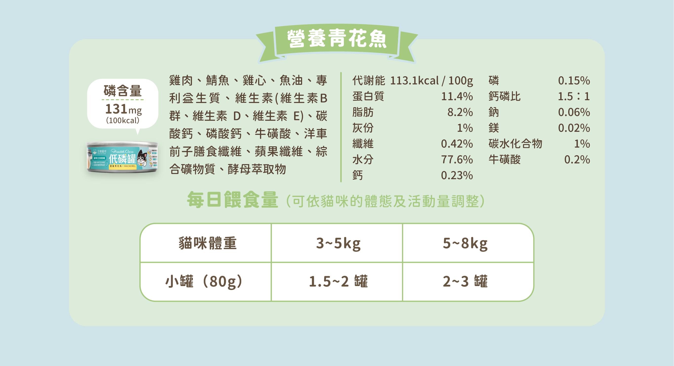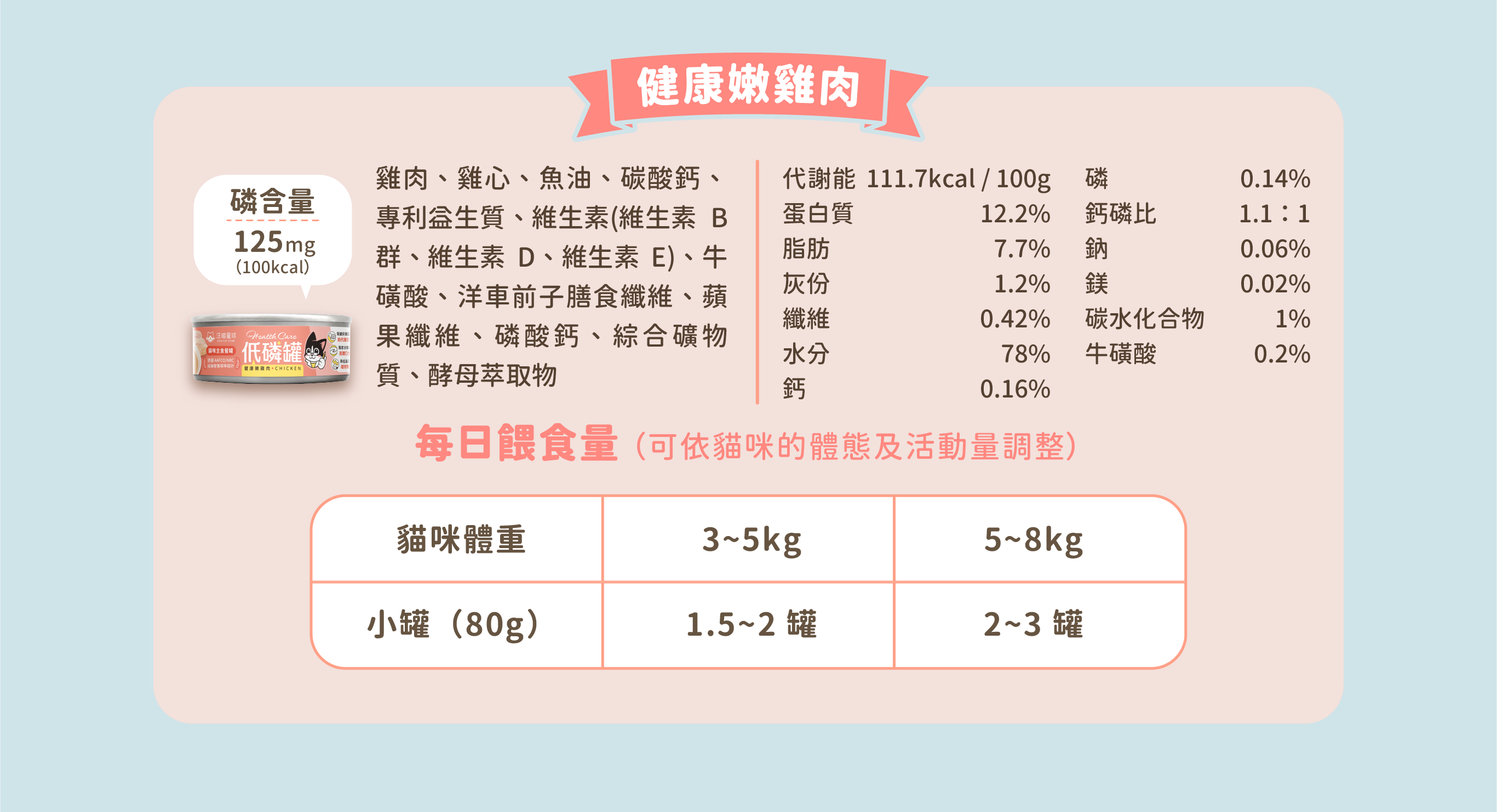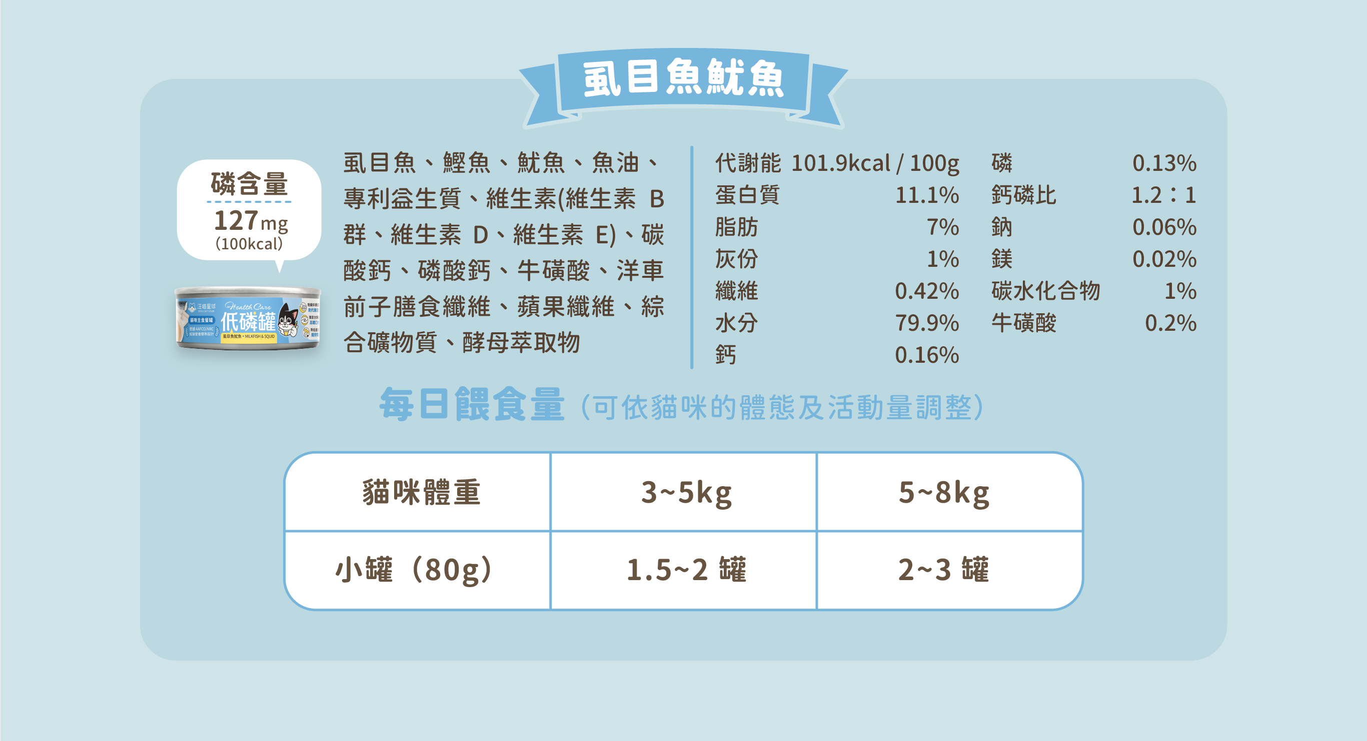 每日食用(80g/罐) 1.5~2 罐 2~3 罐